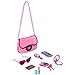 - Includes toy hand bag, sunglasses, smartphone, makeup compact, powder puff, credit card, hair brush, lipstick with cap, and keychain with keys