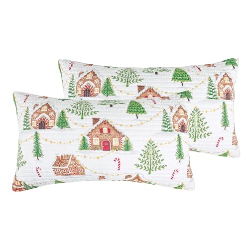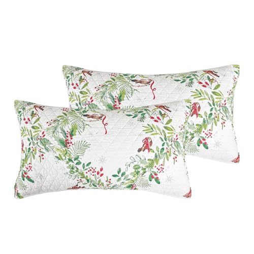 XSlive Lot de 2 taies d'oreiller matelassées 100 % coton, housses de coussin décoratives vintage brodées à motif floral avec bords festonnés pour lit double et grand lit (blanc 50,8 x 68,6 cm)