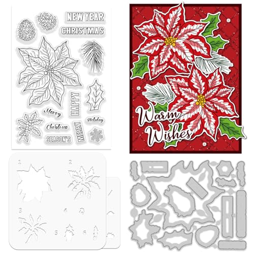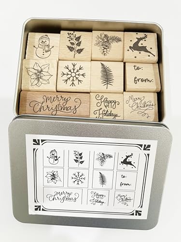Arbuya Tampons transparents en caoutchouc pour la fabrication de cartes de Noël, la décoration et le scrapbooking - Inscription « Merry Christmas » - Inscription « Happy New Year » - Motif branches de