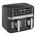 West Bend Air Fryer Dual Basket 10-Quart Capacity with Digital Controls View Windows and 15 Cooking Presets, Nonstick Frying Baskets, 1600-Watts, Black