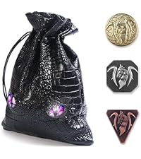 - 【Bag Designed for Board Games】DND coins bag made of high-quality PU leather, cowhide for the rope of the bag, and easy to pull. The texture of the black dragon scales makes you feel like a DND gamer standing next to the black dragon and feeling the power of the dragon. In the dark, the realistic eyes on the bag glow green, giving you a fantastic feeling of being in the real world