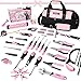 SHALL 246-Piece Ladies Home Hand Tool Set Kit with Bag and Multiple Tools Including Screwdrivers, Wrenches, Hammer, Tape, Pliers, Knife, and Saw, Pink