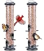 6-Port Hanging Bird Feeders for Small Birds: This tube-style hanging bird feeder includes 6 metal feeding ports and aluminium perches, offering plenty of space for multiple birds to feed at once—great bird feeders for small birds.