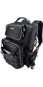 - Easy-Access: This technician backpack features a rigid base & back to maintain the travel tool bag with wheels standing up & fully opened. And the electric tool backpack features an orange lining that maximizes visibility.