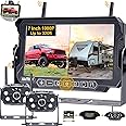 Dual Wireless Backup Camera for RVs: Plug and Play Pre-Wired for Furrion System - 7 Inch 4 Split Screen Wide View Recording Rear View Camera for Trailer Camper Motorhome with Stable Signal