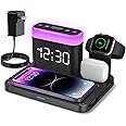 ANJANK Wireless Charging Staion,5 in 1 Multiple Charger Stand with Alarm Clock,7 Night Light,Mag-Safe Charging Dock for iPhone 17 16 15 14 13 12 Pro Max Plus,Apple Watch11/10/9/8/7,for Airpods,Bedroom