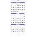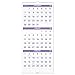 3-MONTH OVERVIEW – Vertical wall calendar displays three months per page with the past month on top, current month in the middle and future month on bottom. Pages measure 12" x 27". Daily blocks measure 1-1-8" x 1.5".