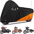 • AUTOLION Waterproof Motorcycle Cover for Touring Models Harley Davidson Road King Road Glide Street Glide Electra Glide Low Rider-ST Indoor & Outdoor All Weather Protect from Dust Rain (Black&Orange)