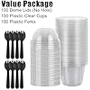 Acrux7 100 Pack 6oz Plastic Cups with Dome Lids No Hole, Disposable Parfait Cups with Lids & Sporks, Clear PET Dessert Cups
