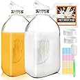 Product Summary: 2 Pack 64 Oz Glass Milk Bottles with Nut Milk Bag & Airtight Lids | Includes 2 Pour Spouts | with Cleaning Brush | 1/2 Gallon Heavy Duty | 1.9L Reusable Container | for Refrigerator Storage