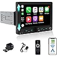 Single Din Car Stereo Touchscreen (7" Adjustable) Compatible with Apple CarPlay [Wireless] Android Auto Car Radio Bluetooth Type-C USB (3A Fast Charge) Backup Camera