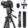 Tripod, 60-Inch Camera Tripod Stand Aluminum for Photography Canon Nikon Sony with Fluid Head & Carry Bag, Lusweimi Video Tripod with Universal Phone Mount & Wireless Remote for iPhone Android Phone