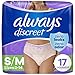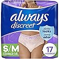 Always Discreet Adult Incontinence Underwear for Women and Postpartum Underwear, Size S/M, Up to 100% Bladder Leak Protection, 17 Count