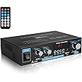 Stereo Audio Amplifier Bluetooth 5.0, 2.0 Channel Mini Stereo Receivers with Bass & Treble Control,Home Audio w/AUX, USB, SD Card Input,Remote Control