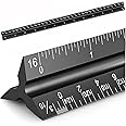 Architectural Scale Ruler, Imperial Measurements 12'', Laser-Etched Aluminum Architect Triangular Ruler Black for Architects, Students, Draftsman and Engineers