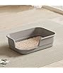The reinforced bottom and rim design on the litter box provides extra strength and durability. The unique designed rim helps hold litter liners in place. The higher rim also reduces litter scatter.