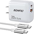 This item: BENFEI USB C Charger, 20W GaN Wall Charger Compatible with iPhone 16/16 Pro/Pro Max/iPad Pro with 60W 3ft USB-C Cable