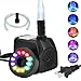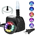 Fountain Pump, Submersible Water Pumps, Ultra Quiet Water Pump With 12 LED Colorful Lights, 2 Nozzles, Easy Install Powerful Pump for Fish Tank, Pond, Aquarium, Statuary