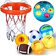 - ✨ Light-up Bath Toys:6-piece glowing balls (football, basketball, baseball, volleyball, Beach Volleyball, rugby) feature waterproof LED lights that flash fun colors on contact with water!These light up water toys float on the surface, delighting kids aged 1-3 as they play during bath time