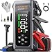 - 💡【EMERGENCY 500LM LIGHTS & COMFORTABLE HANDLE】The car booster is featured with 500 lumens WIDE lights that is significantly brighter by more than 400%, providing 4-mode lights for different cases. White flashlight ensures vital visibility after dark, easy for map reading, engine maintenance, changing or inflating tires, and campsite setup, etc. White strobe can deter potential threats, red strobe doubles as warning triangle during roadside emergencies, and SOS draws attention to a rescue when emergencies. Combined detachable handle enables easy carrying and usage.