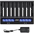 8 Bays 21700 18650 Battery Charger XTAR New VC8 Plus 21700 Smart Charger with LCD Display,1A*8 Fast Charger for 3.6V 3.7V Li-ion 10440 18700 26650 1.2V Ni-MH AA AAA C Full Set with DC 12V 3A Adapter