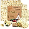 5 Pack Beeswax Wrap, Reusable Food Storage Wraps, Eco Friendly and Organic, Non-Toxic, Washable, Suitable for Fruits, Vegetables, Cheese, Bread, Sandwiches etc