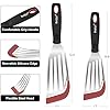 - [Flexible and Sturdy] Our fish spatula stainless steel is 0.8mm thin, with a curved design and beveled edges for easy to slide beneath and flip food. It can also easily lift heavy foods, balancing flexibility and strength. The slotted spatulas designed to drain excess oil and grease.