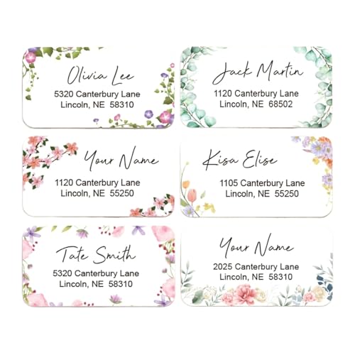 Set of 150 Self Adhesive Personalized Water Colour Wildflowers Return Address Labels, Water Colour Style, Recycled Paper Labels, Custom Labels for Postage