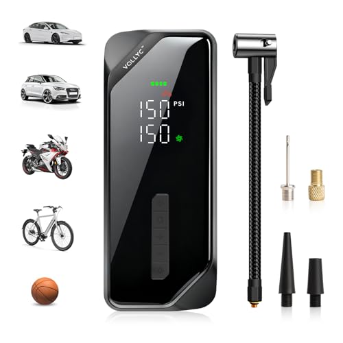 Syncwire Tire Inflator Portable Air Compressor - 150PSI 2X Faster Inflation Smart Air Pump for Car Tires [Extra-large LCD] with Digital Pressure Gauge, Auto Shut-off for Car, Motorcycle, Bike & Balls