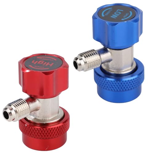 2Pcs R1234yf to R134a Adapter, Quick Couplers Kit R1234yf Refrigerant Recharge Kit, High/Low Side R134a to R1234yf Adapters for R1234yf/R134a Car Ac Refrigerant System Evacuation Recharging, Red, Blue