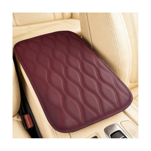 TSUGAMI Car Center Console Cover, Leather Waterproof Vehicle Armrest Seat Box Protection with Elastic Strap, Comfortable Automotive Arm Rest Cushion Pad Decoration, Universal Fit (Wine Red)