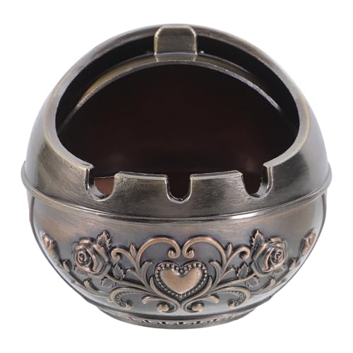 Stylitzy Vintage Ashtray with Lid for Cigarettes,Metal Windproof Smokeless Odorless Ash Tray Holder for Indoor Outdoor Decorative Hand-Carved Fancy Gift Ornament for Home Office (Bronze Dragon)