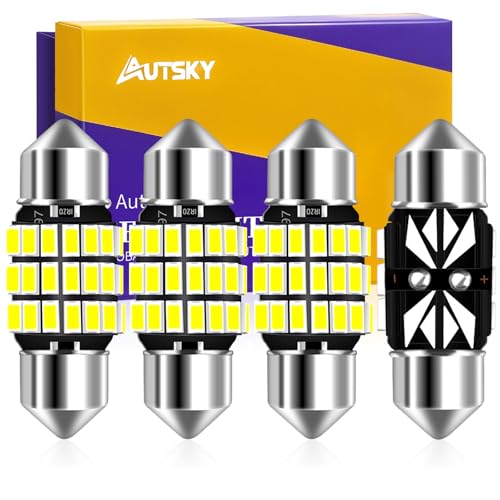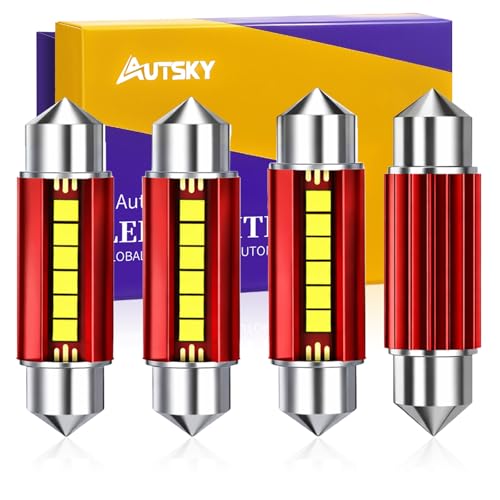 AUTSKY 41MM 42MM Festoon LED Bulb White for Interior Dome Map Vanity Mirror Sun Visor Lights, 211-2 212-2 578 569 214-2 LED Bulbs 6500K Super Bright, Canbus Error Free 6-SMD 2525 Chips (4-Pack)