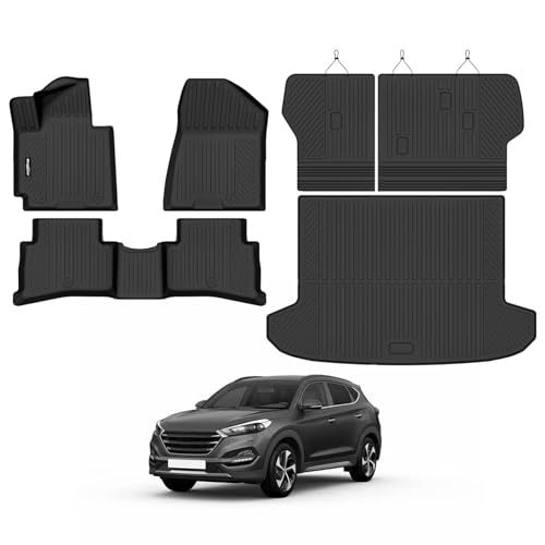 All Weather Floor Mats & Cargo Liner for 2022-2025 2026 Hyundai Tucson (Not Fit Hybrid/PHEV), Custom Fit 1st & 2nd Row with Trunk Mat Back Seat Cover Protector Full Set for Tucson Accessories Heavy