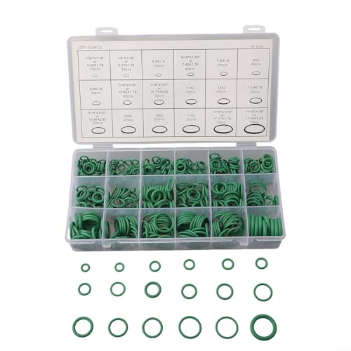 HNBR O-Ring Assortment Kit 270Pcs 18 Sizes Rubber Seals Gaskets Replacement Set for Car Vehicle Air Conditioning Repair Green