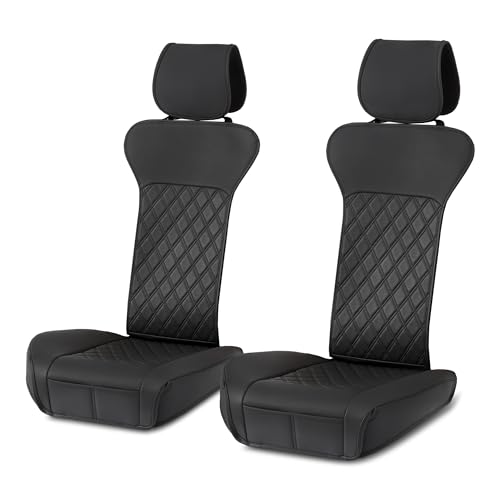 CAR PASS Faux Leather Car Seat Covers Front Seats Only, 3D Foam Support Car Seat Covers, Universal fit for Trucks Vans SUVs Sedans Automotive Comfortable, Airbag Compatible 2 Pieces Front Solid Black