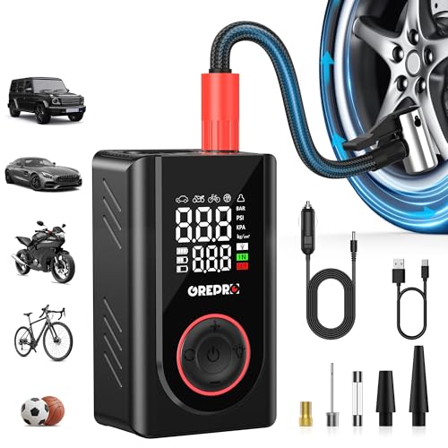 FORTEM Tire Inflator Portable Air Compressor 150 PSI, 12V Electric Bike Pump for Car Tires and Bicycles with LED Light, Digital Tire Pressure Gauge w/Auto Shut Off, Carrying Case