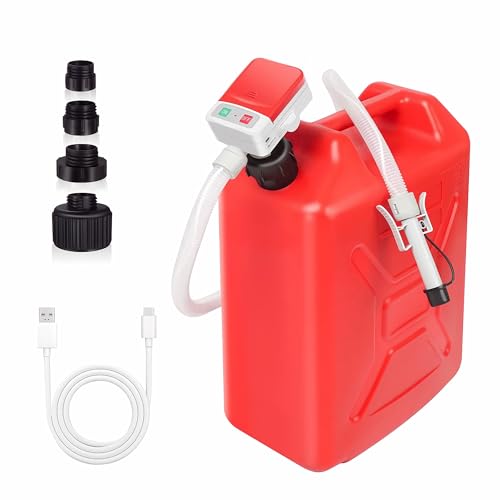 Battery Powered Gas Can Transfer Pump, Portable Fuel Transfer Pump for Gasoline, Diesel, Kerosene, Water, Upgraded Flex Inlet for Deep Liquid Reach, Spill-Proof Electric Gas Pump for 5 GAL Can