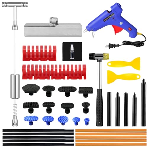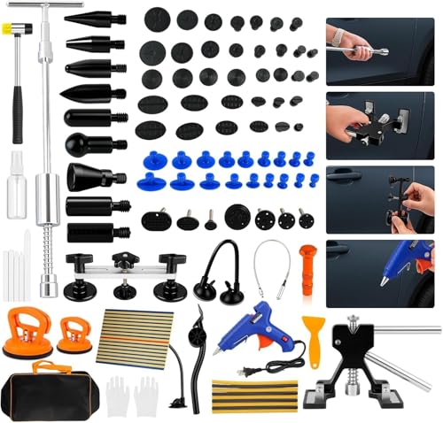 Auto Body Dent Repair Kit, Paintless Dent Removal Kit with Dent Lifter, Bridge Puller, Rubber Hammer, t-Bar, Suction Cup, Dent Puller for Auto Body Dent