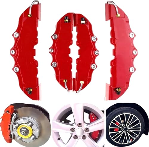 Caliper Covers, 2 Pairs Brake Caliper Covers, Red Style Front & Rear, Heat-Resistant for Wheel Hub