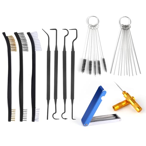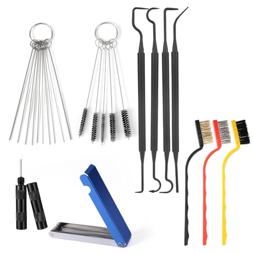Carburetor Cleaning Kit, Carburettor Includes 23 Carb Needles 5 Nylon Brushes 1 Scraper and 4 Cleaner Hooks for Motorcycle ATV Chainsaw & Welder Maintenance