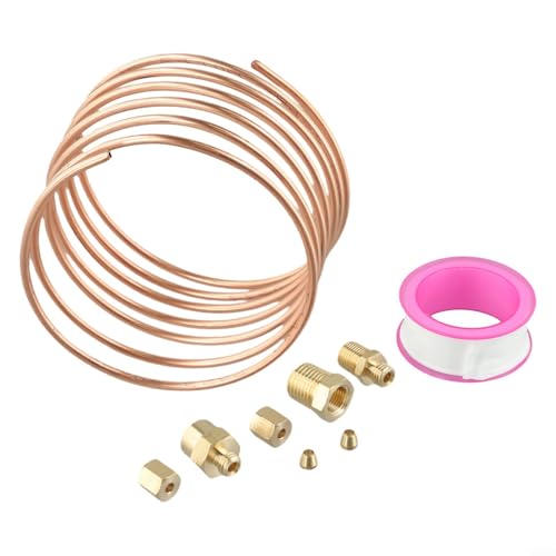 Oil Pressure Gauge Tubing Kit, Mechanical Oil Pressure Gauge Line Kit 72in Copper Tube and Threaded Parts Installation with Fitting for Car Truck