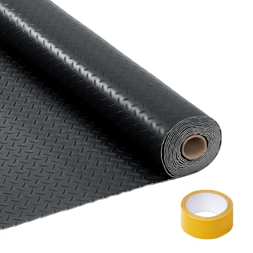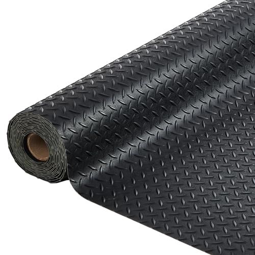7.5x17 ft Garage Floor Mat, 2.8mm Heavy Duty PVC Garage Flooring Roll, Non-Slip Diamond Plate Surface, Waterproof Protective Floor Cover for SUV, Truck, Car Parking, Workshop, Gym, Black