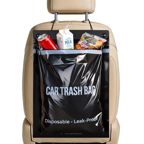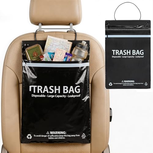 Einesin Car Trash Can for Back Seat Car Accessories Interior Car Garbage Can, Waterproof Car Trash Bin for Cars SUV with Leakproof Interior Liner, Adjustable Tissue Holder & Straps(Black)