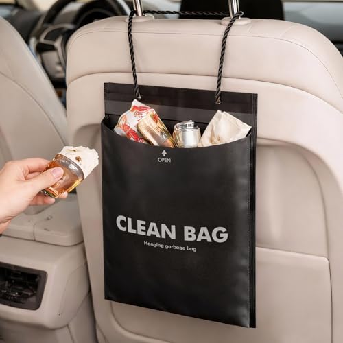 EcoNour Car Trash Can (Large) | Car Trash Bag Hanging with Elastic Opening & Easy Mount | Car Garbage Can with Waterproof Oxford Material | Cute Car Accessories for Camping, Traveling & Outdoor