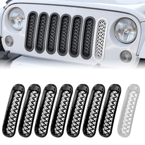 Car Grille Net,2 Pcs Front Hood Grille Protection Mesh with Hook,Anti-Clogging Exterior Air Intake Dustproof Net,High-Density Engines Water Net Guard Protector,for Most Cars,Trucks,SUVs (Black)