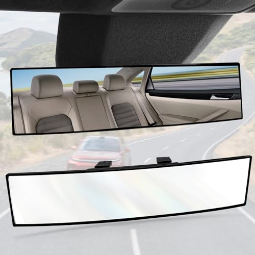 Car Rearview Mirror 12 Inch Panoramic Wide Angle Anti Glare Interior Clip-on Wide Angle Rear View Mirror Reduce Blind for Cars SUV Trucks Vehicles