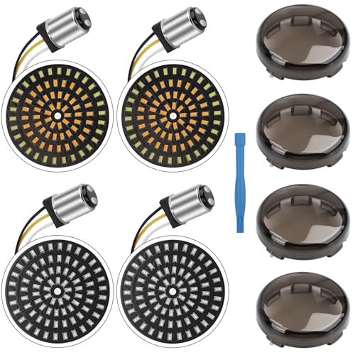 Amazicha 2" LED Turn Signals 1157 Front Rear Turn Signal Lights w/ 4 Pcs Smoke Lens Covers Compatible for Harley Davidson Street Glide Road Glide Softail Sportster Street Bob