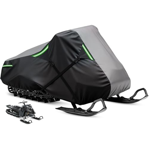 Tokept Snowmobile Cover, 300D Waterproof Oxford Fabric Sled Ski Cover, with Triangle Straps Reflective Strip, Elastic Bottom can Trailer, Fit Length 145"x 51"x 48" (XL Black&Grey)