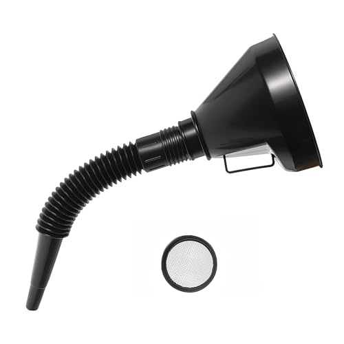 LSKASELUE Multi-Functional Plastic Funnel, Wide Mouth Flexible Fuel Funnel with Handle & Mesh Screen Filter, Large Car Filling Funnel with Extension Spout for Engine Oil Gas Transmission